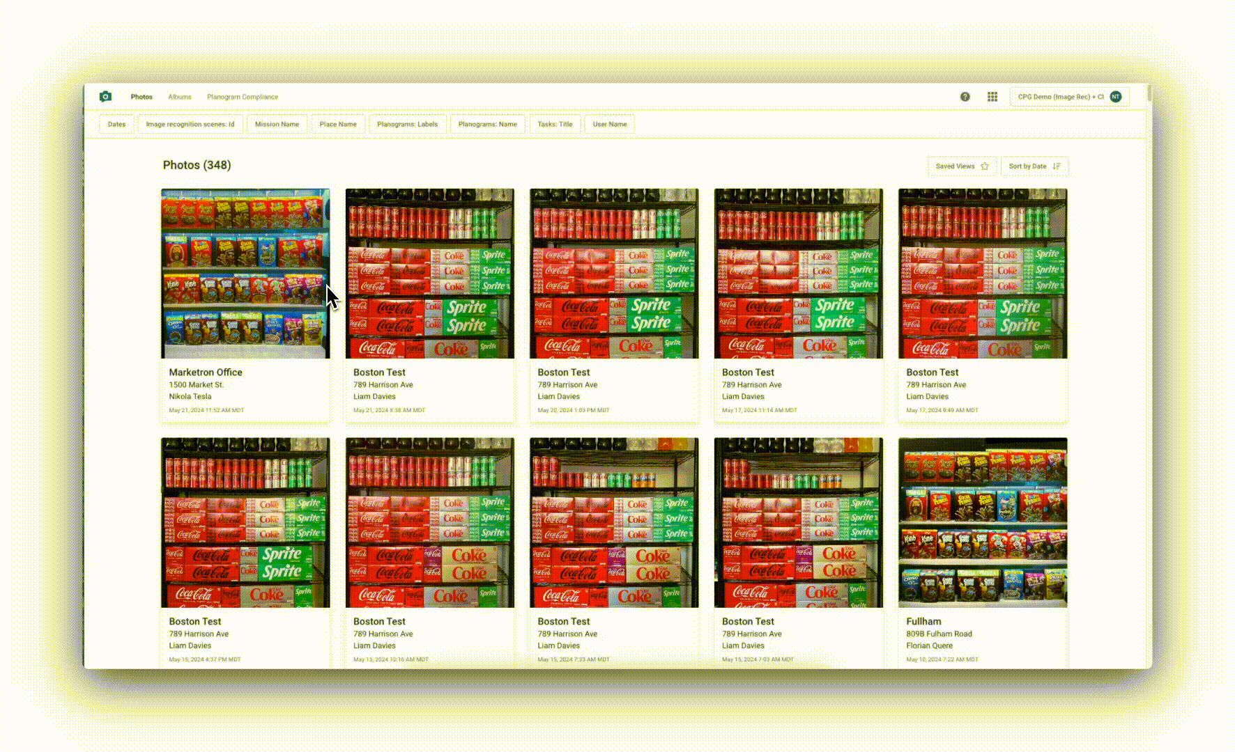 This mobile reporting is not the only visual output of GoSpotCheck, as a whole suite of photo reporting is available on desktop. This shareable gallery allows you to filter photos by any user, location, or brand parameter, digging into each photo along with photo tags and even creating dynamic exportable albums.
